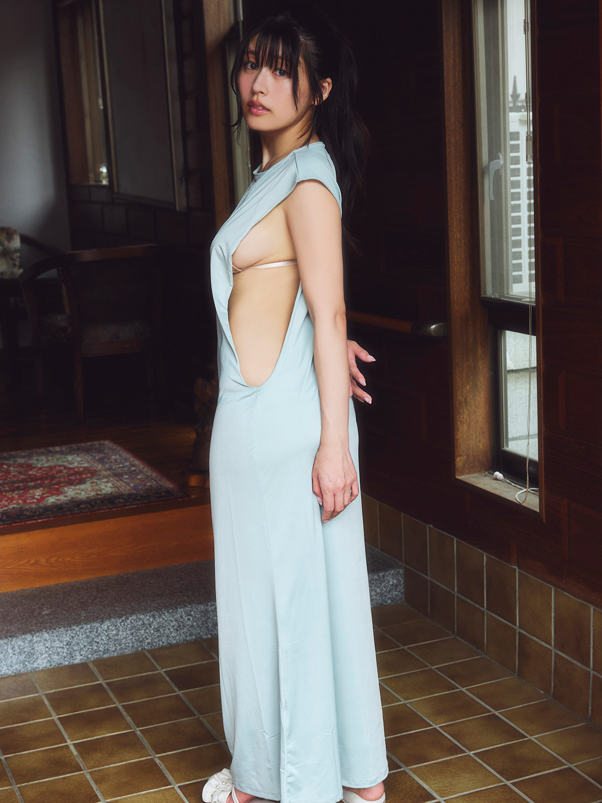 見なければ一生後悔する、ちとせよしののフルスロットルセクシーがここに集約! 極小ベージュランジェリーでの開脚ポーズはまだ序の口。かつて勤務していた鉄工所をイメージさせる作業服姿で登場すれば、屋外でドンドン脱がされ、ついにその下から見えいずる純白パンティーの鮮烈! 極め付きは見せちゃいけない部分以外、全部布が取っ払われた究極マイクロ黒パンティー擁するビキニでの入浴シーン!! 攻めに攻めまくったギリギリのビキニラインがシャワーで濡れるリアリズム!! 驚天動地のセクシー全100枚にさァ~挑め!!(解説文・カーツさとう)